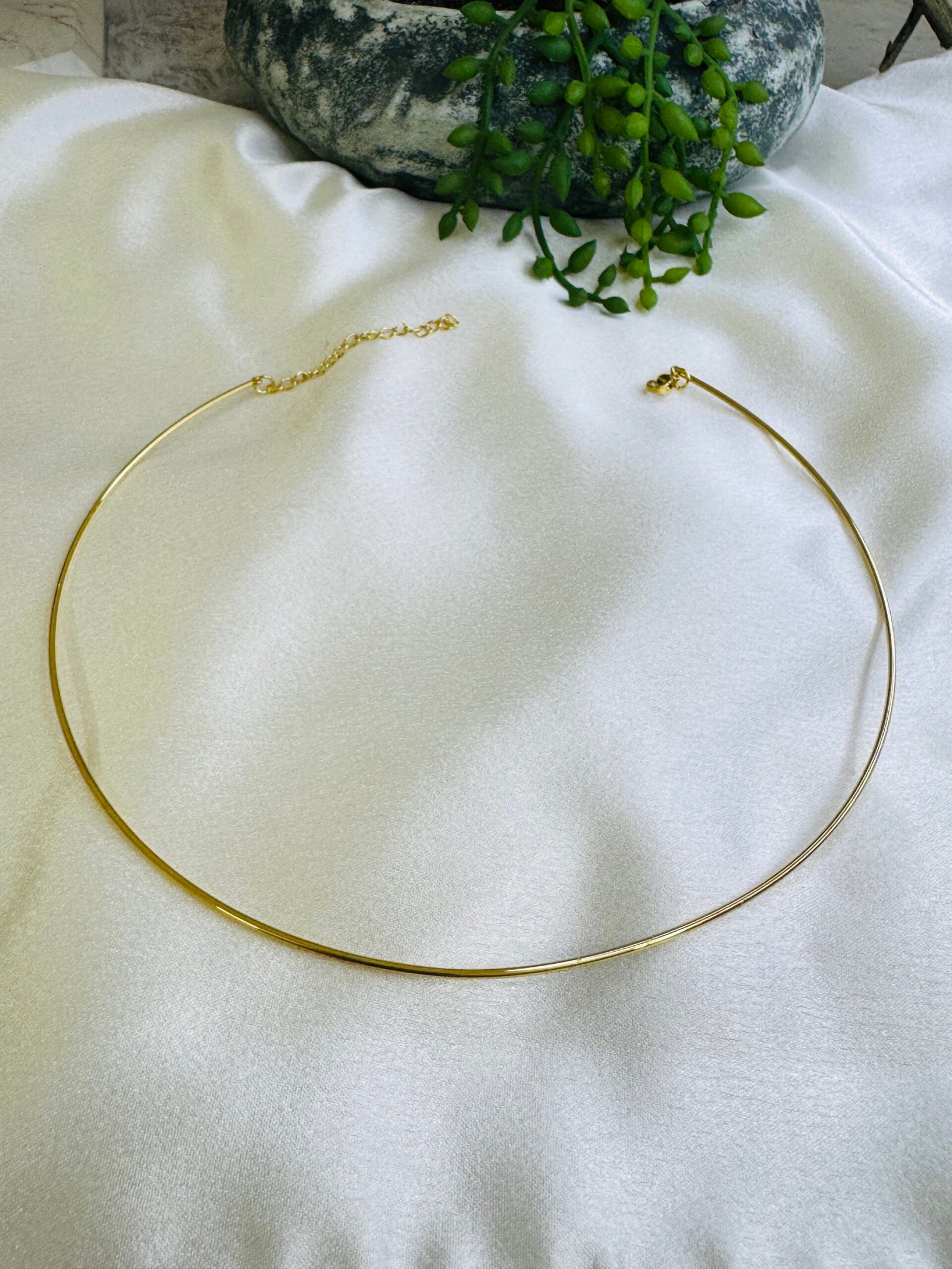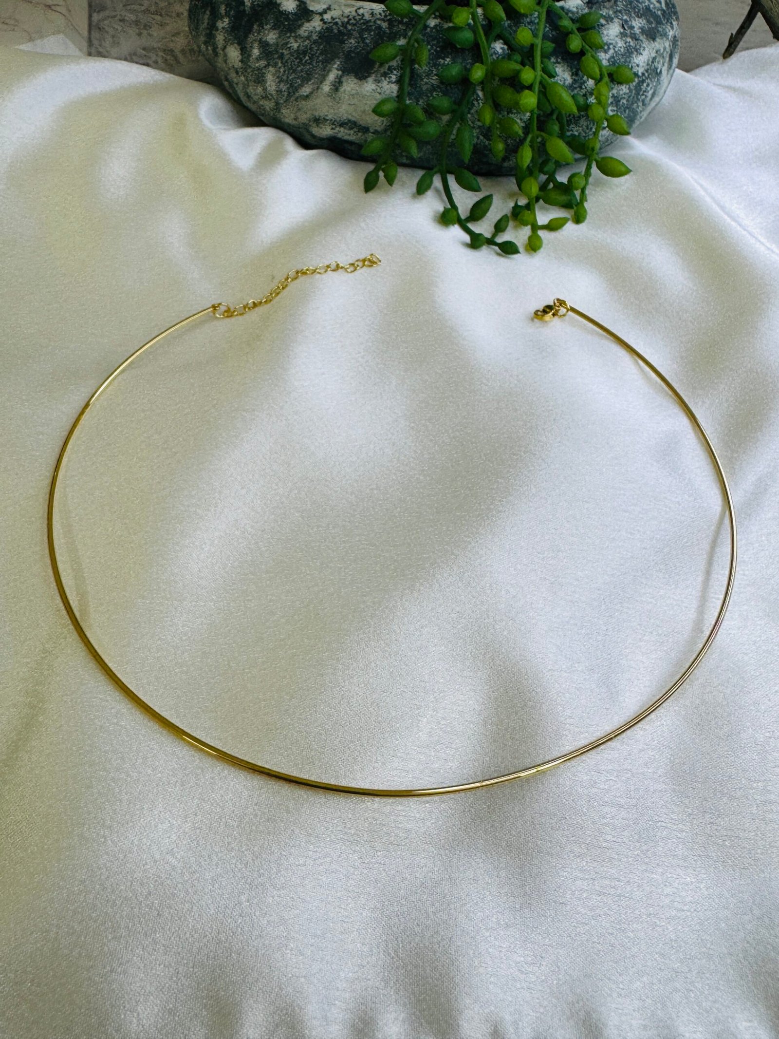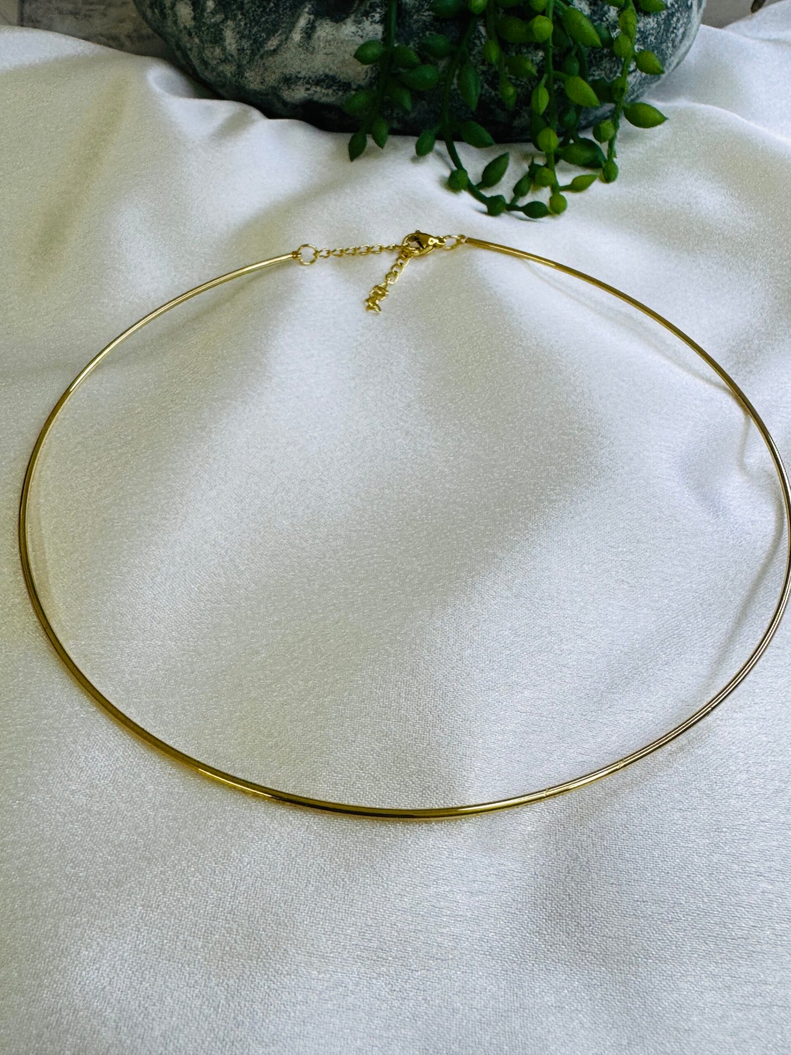 18KT Yellow gold hard stiff round collar Necklace Anti tarnish, water resistant.