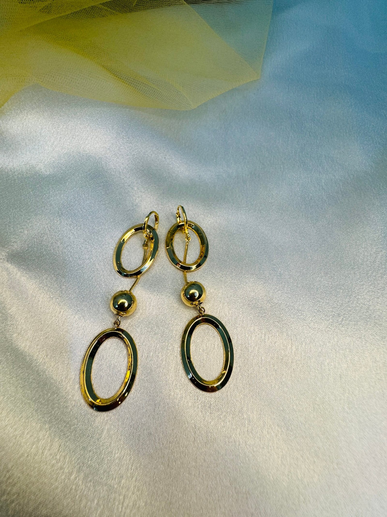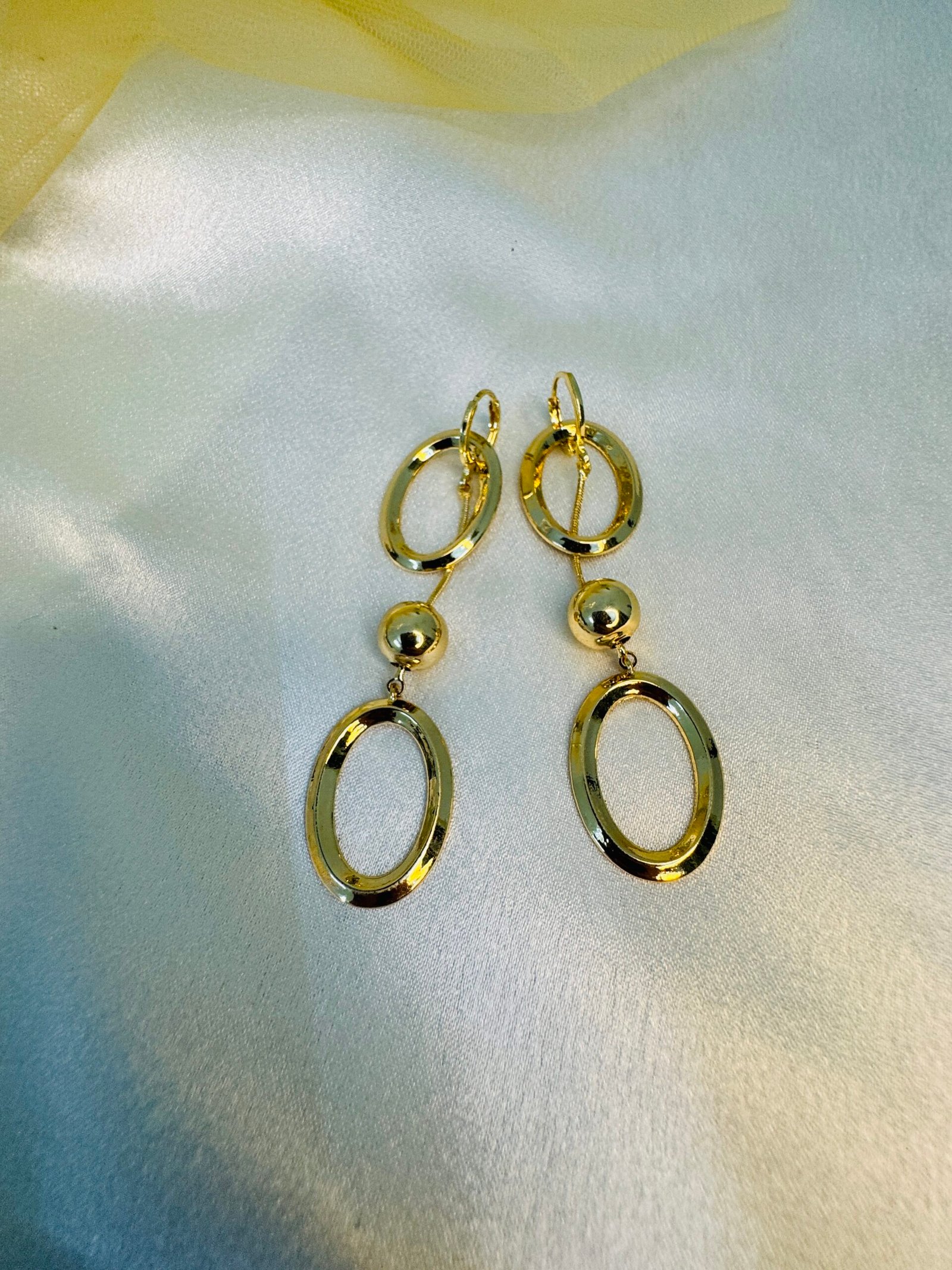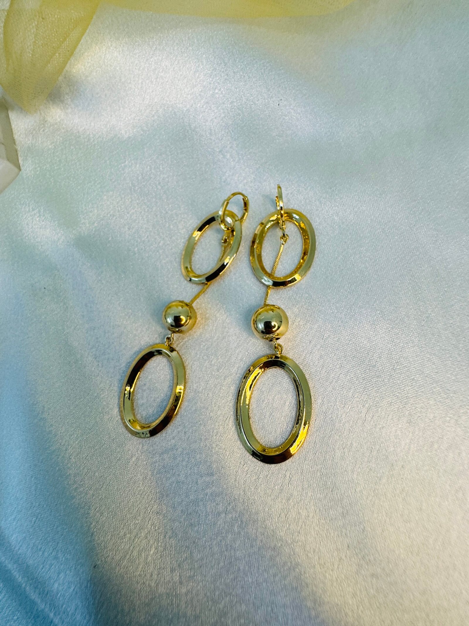 Be the first to review “A Pair of gold-toned, dangle hoop earring with oval links and a spherical bead accent” Cancel reply