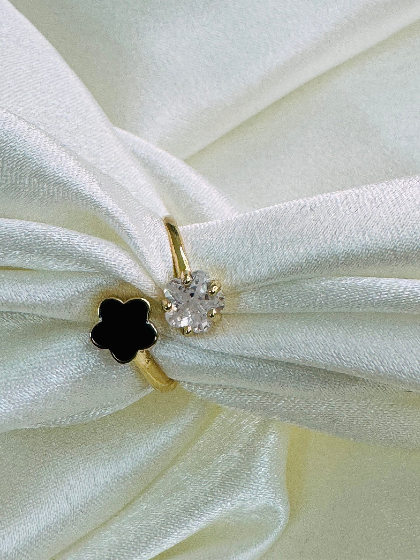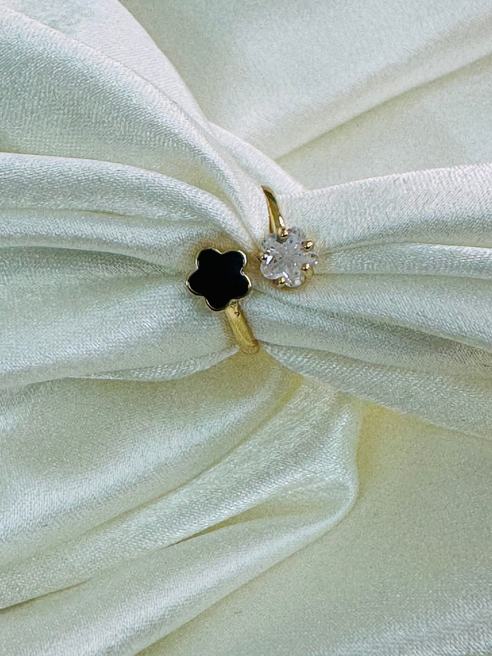 Adjustable gold-plated finger ring with opal-style flower and zirconia accents. 299/-