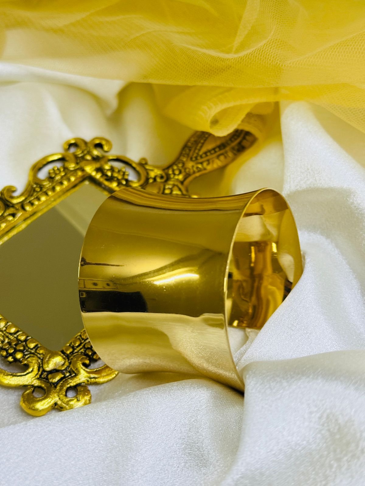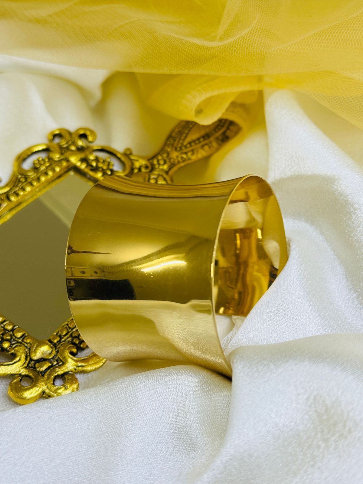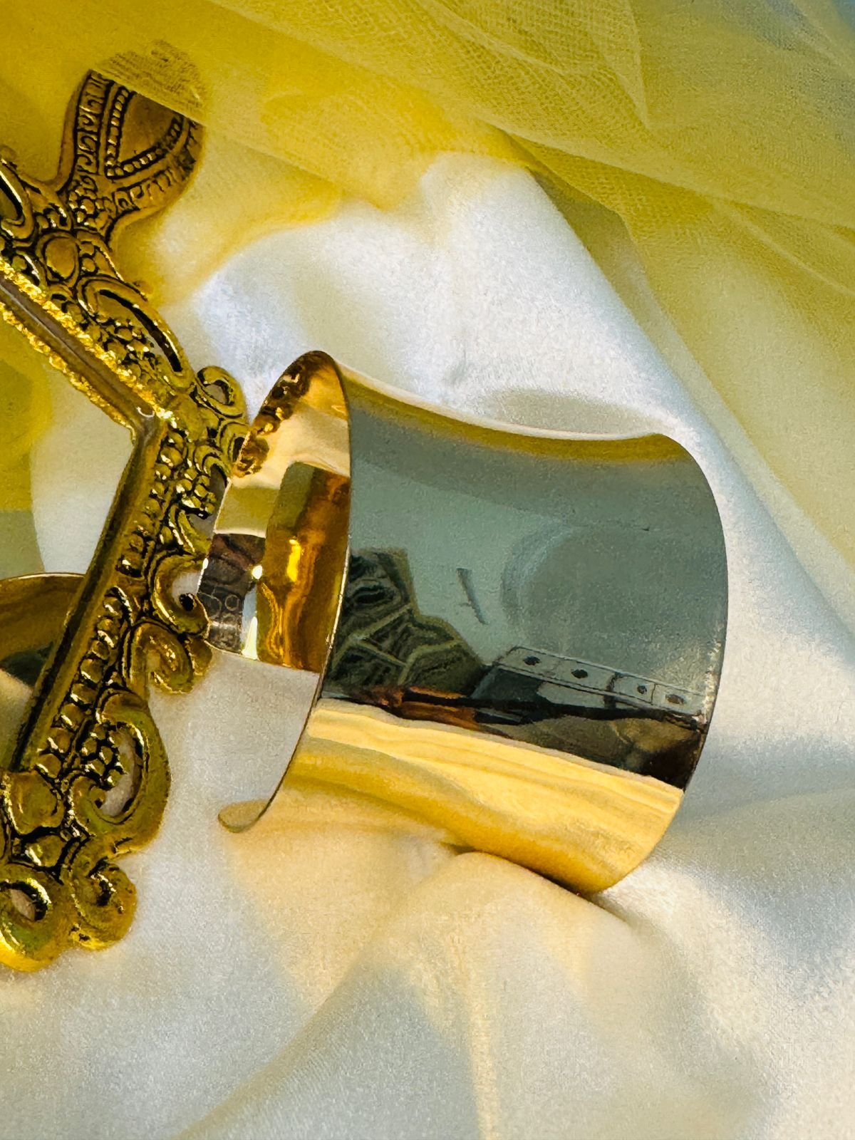 Be the first to review “Gold-plated cuff or bangle bracelet with a sleek, sculptural silhouette.” Cancel reply