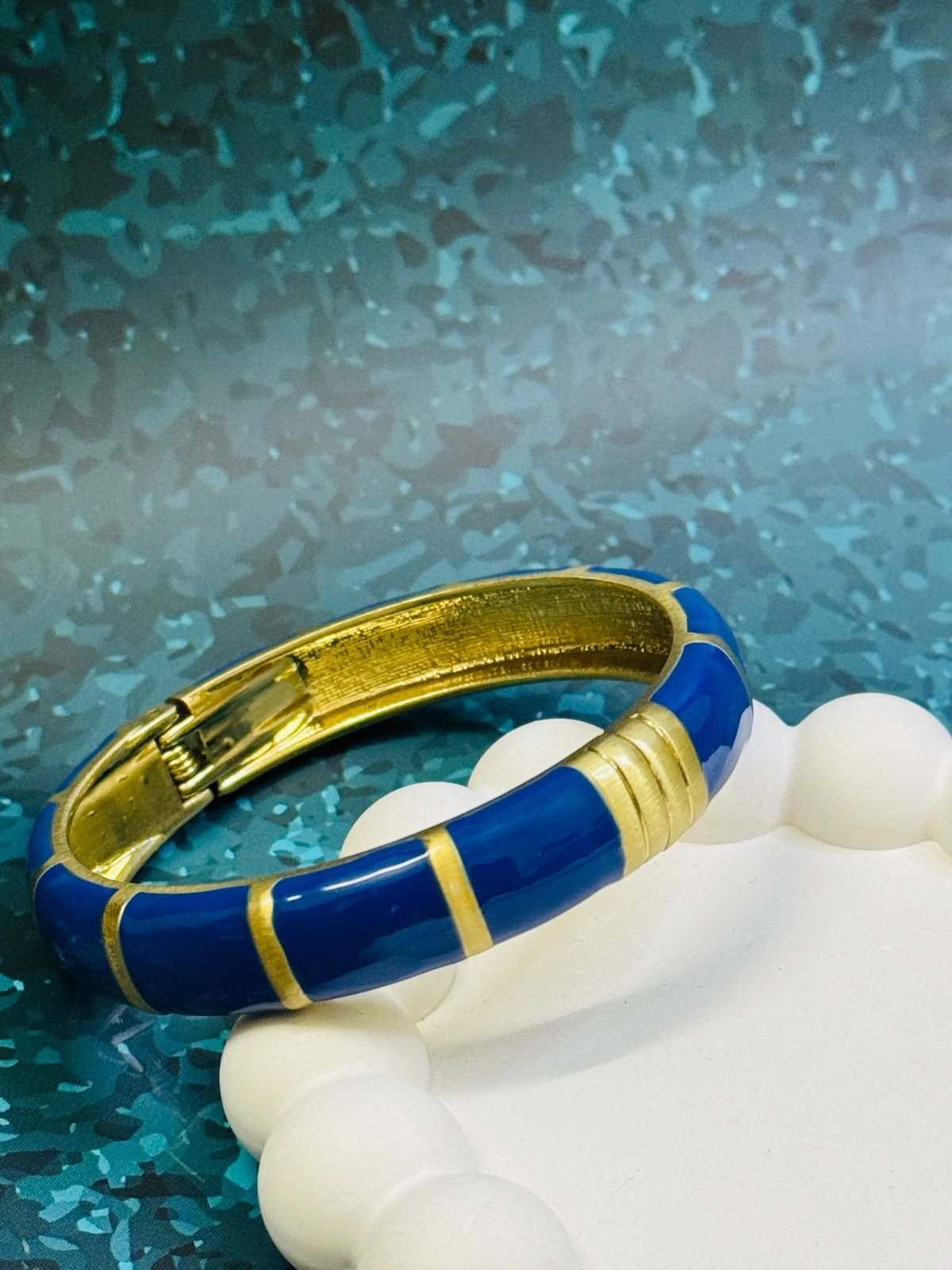 Be the first to review “Gold-tone and navy blue enamel hinged bangle bracelet.” Cancel reply
