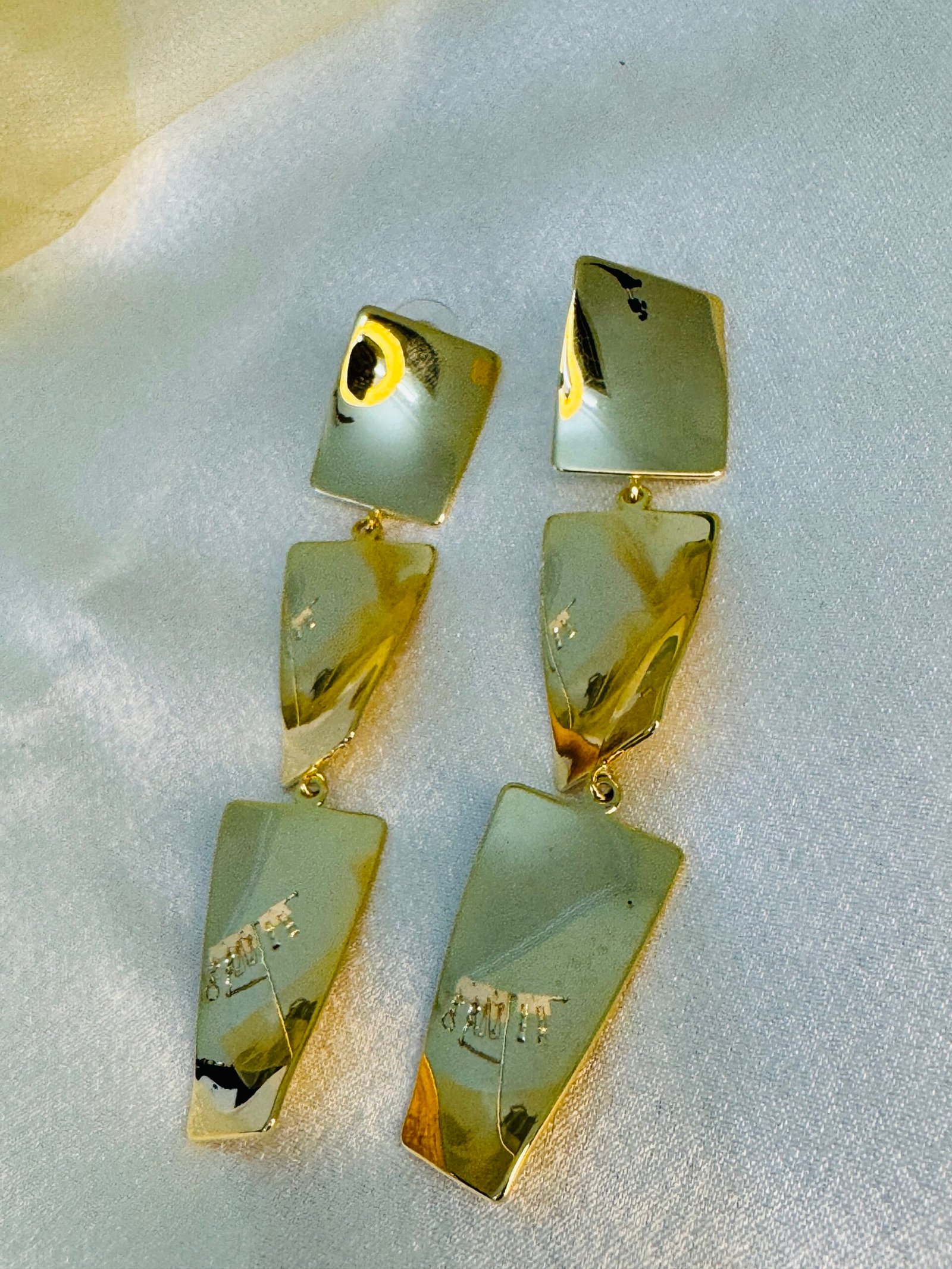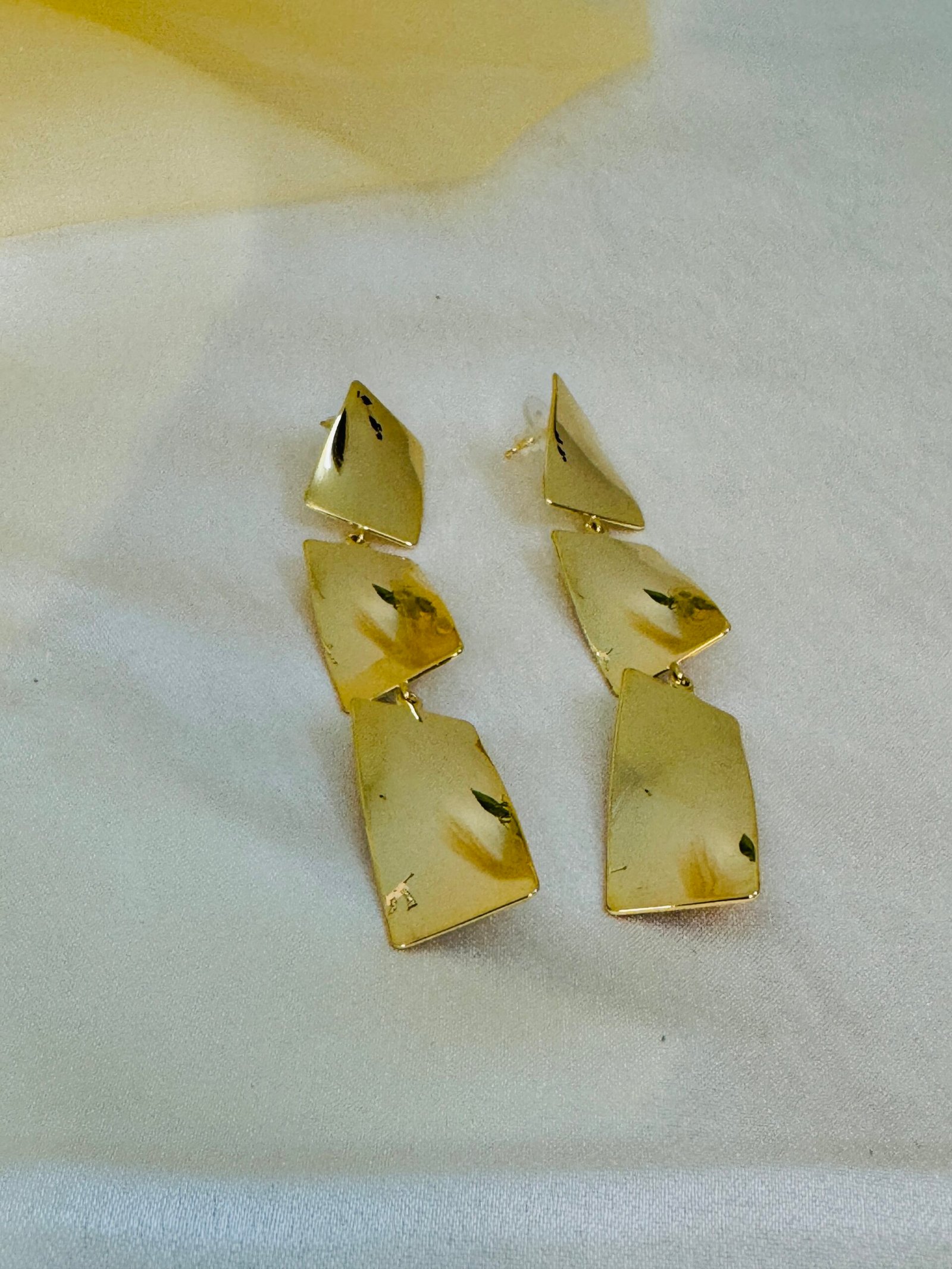 Earrings & Studspair of Studio One Love Raindrop Musings gold-plated brass drop and dangles earrings.