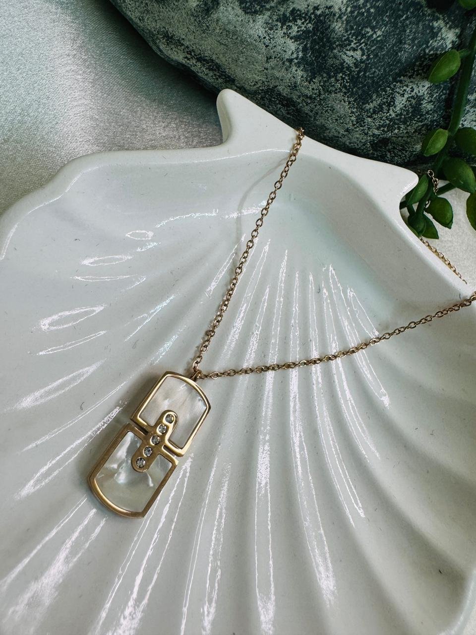 Be the first to review “Rose gold-plated fashion necklace with a shell pendant and crystal accents.” Cancel reply